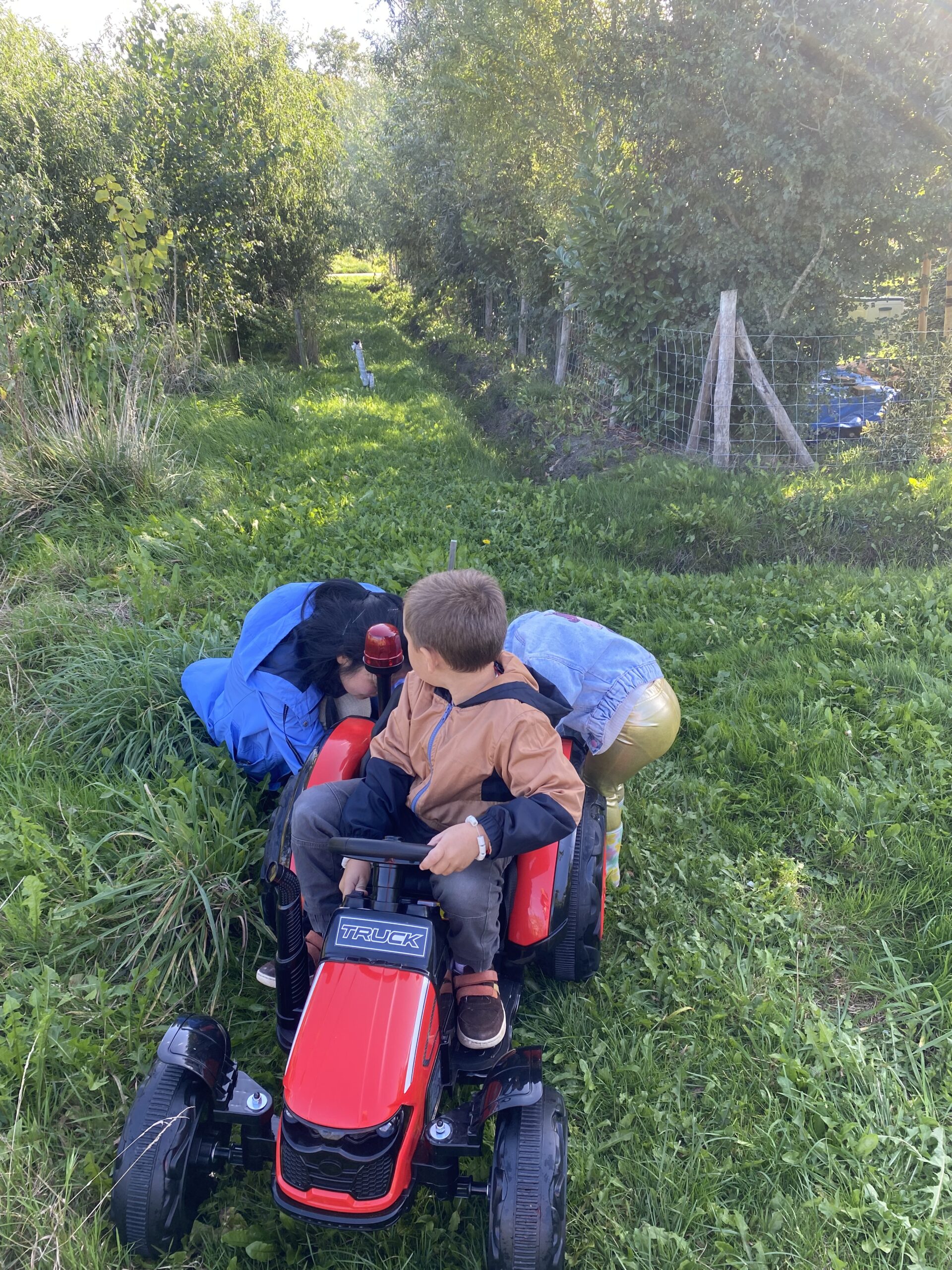 – Een groene buitentuin van meer dan 1000 m2, goed voor 300 kids, met kippenren inclusief konijnen, een enorme zandbak en een elektrische traktor.