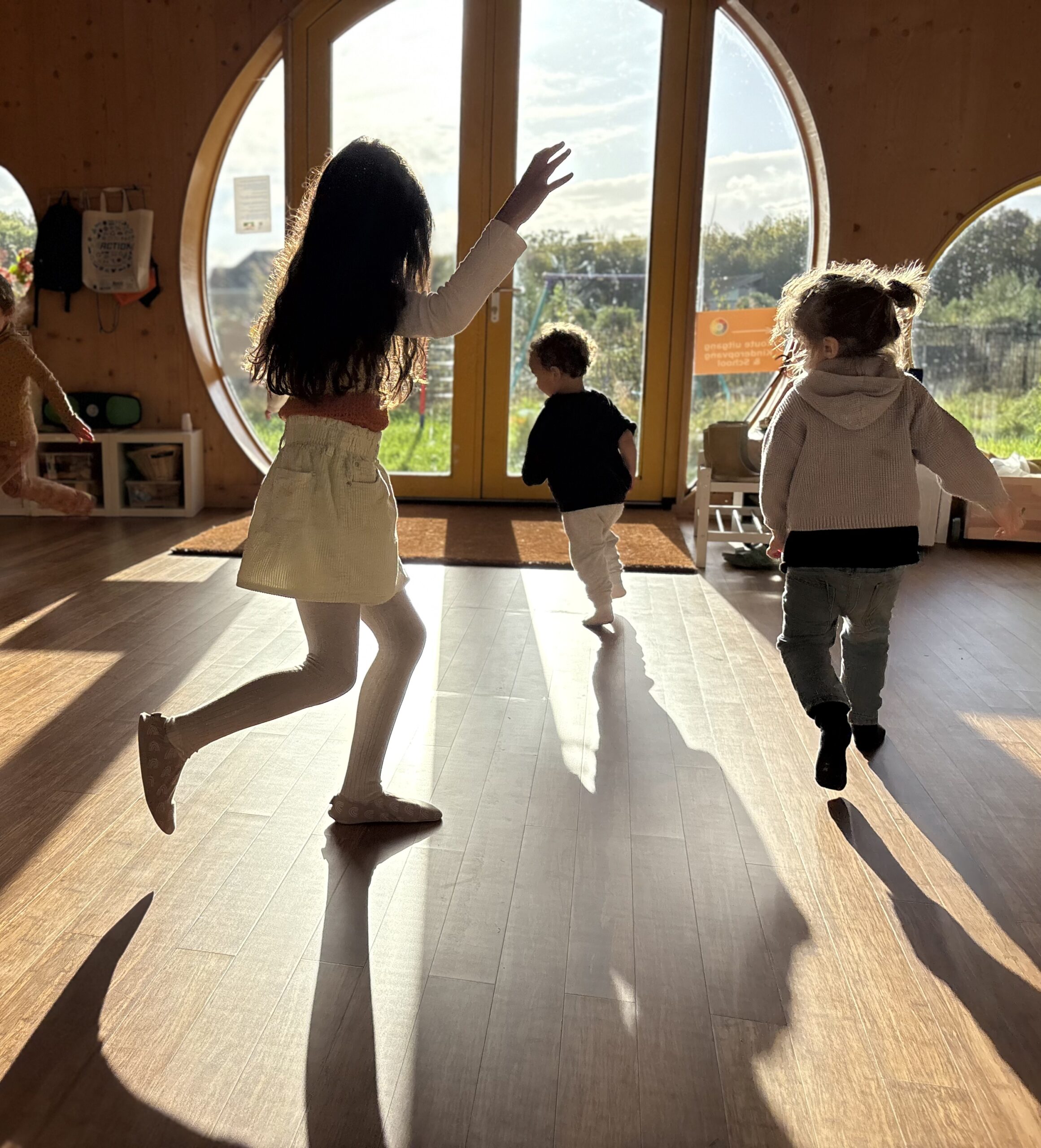 ’s Morgens bij binnenkomst gaan de schoenen uit in de gang. De kinderopvang is schoen-vrij. Sloffen zijn toegestaan. Jassen/rugzakjes blijven in de gang. Knuffels kunnen meegenomen worden.